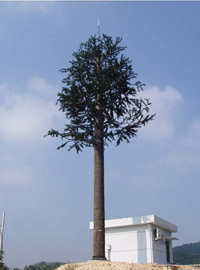 仿生通信塔,屬于通 信發射塔技術領域。是讓通信鐵塔與周圍的自然環境相協調,有效地解決了風景區等地建站難的問題,其優點是保持了原有單管塔的所有優點,在其外形上作了重大 的突破、改進,以自然生長的松樹,樟樹等為仿真的造型樣本,設計素描圖和電腦效果圖,制訂雕塑和噴涂工藝程序,對單管塔仿真偽裝,使人們察覺不到塔的存 在,把它融入了周圍的自然環境中。